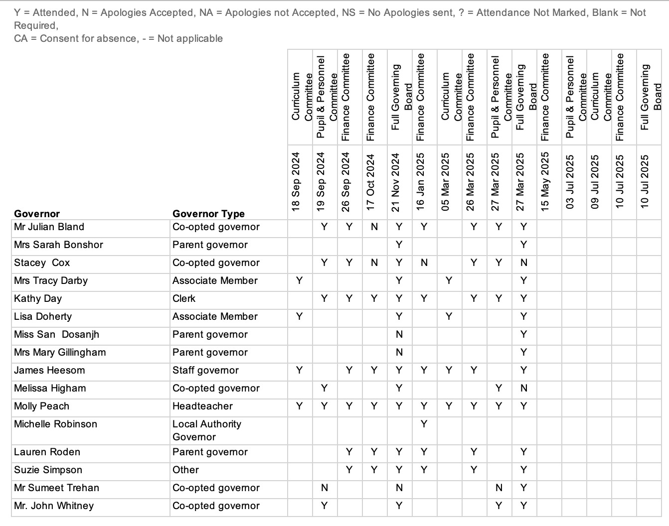 The full Governing Body meets once per term. In addition there are two main committees that deal with issues in more detail, namely Finance & General Purpose (F&GP) and Strategic Development Committee (SDC). These committees also meet once a term and report back to the FGB.