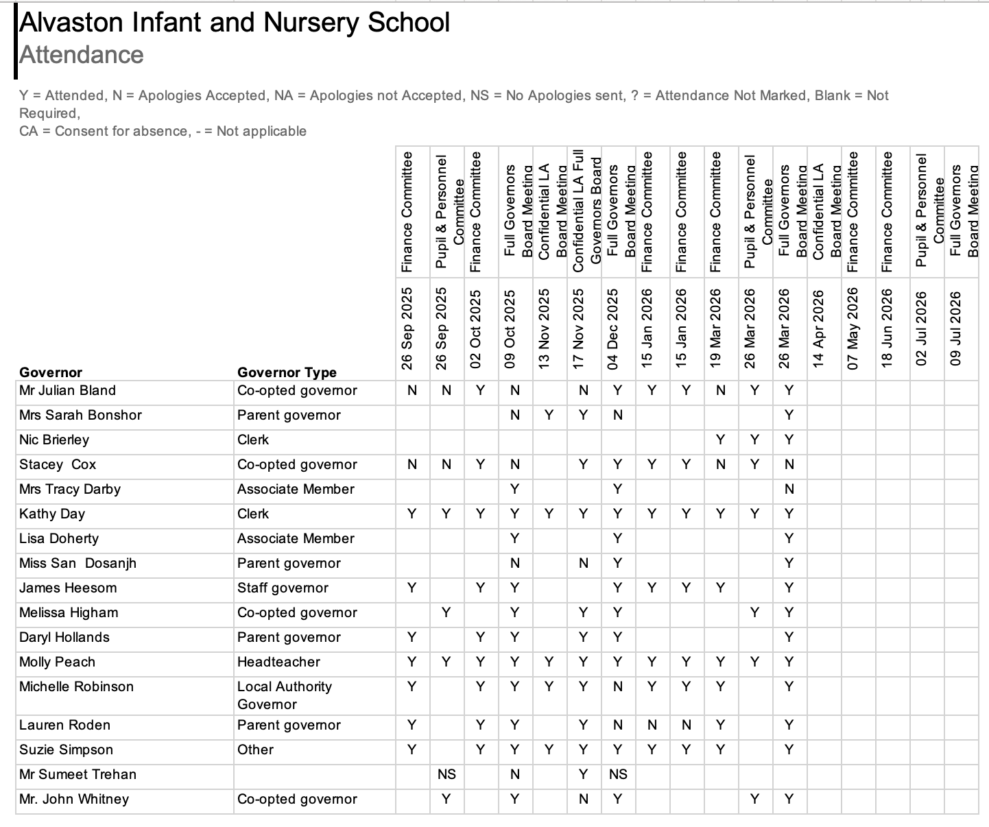 We aim to support the school fully and build upon the positive outcomes from last year. We are also focusing upon key areas that were identified in the Ofsted report and monitor these areas closely. (‘P’ indicates Parent Governor).