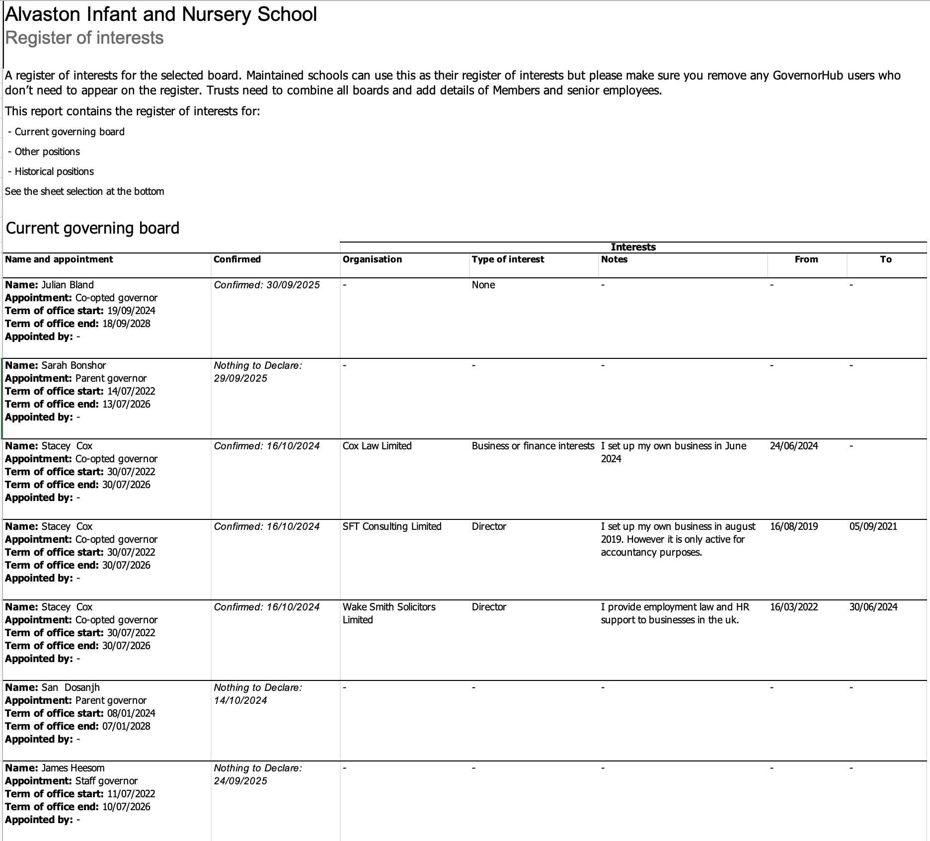 7 x Co-opted governors